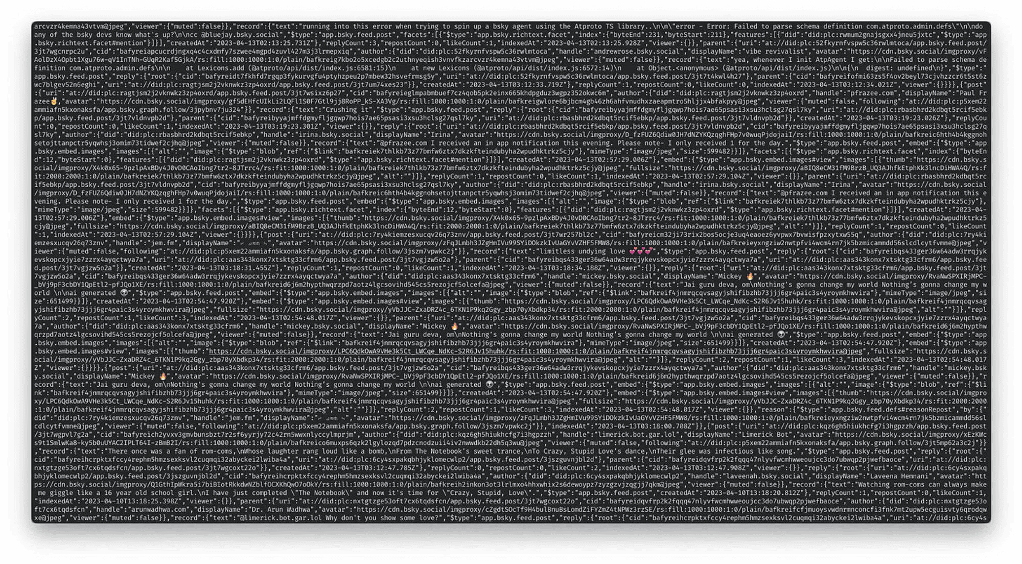 One thing to keep in mind: the timeline response from BlueSky is quite large, and will quickly fill up AI-Legion’s context window. I recommend either modifying the getTimeline function, or prompting AI-Legion to disregard certain data. As a primer, here is my prompt for managing BlueSky:
